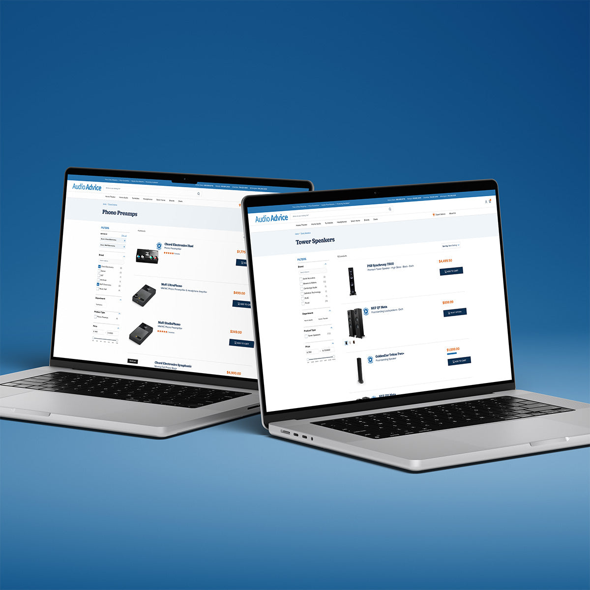 We designed custom PLPs that implemented customizable filters powered by Boost, giving users the ability to fine-tune their searches based on technical criteria—an essential feature for Audio Advice’s discerning customer