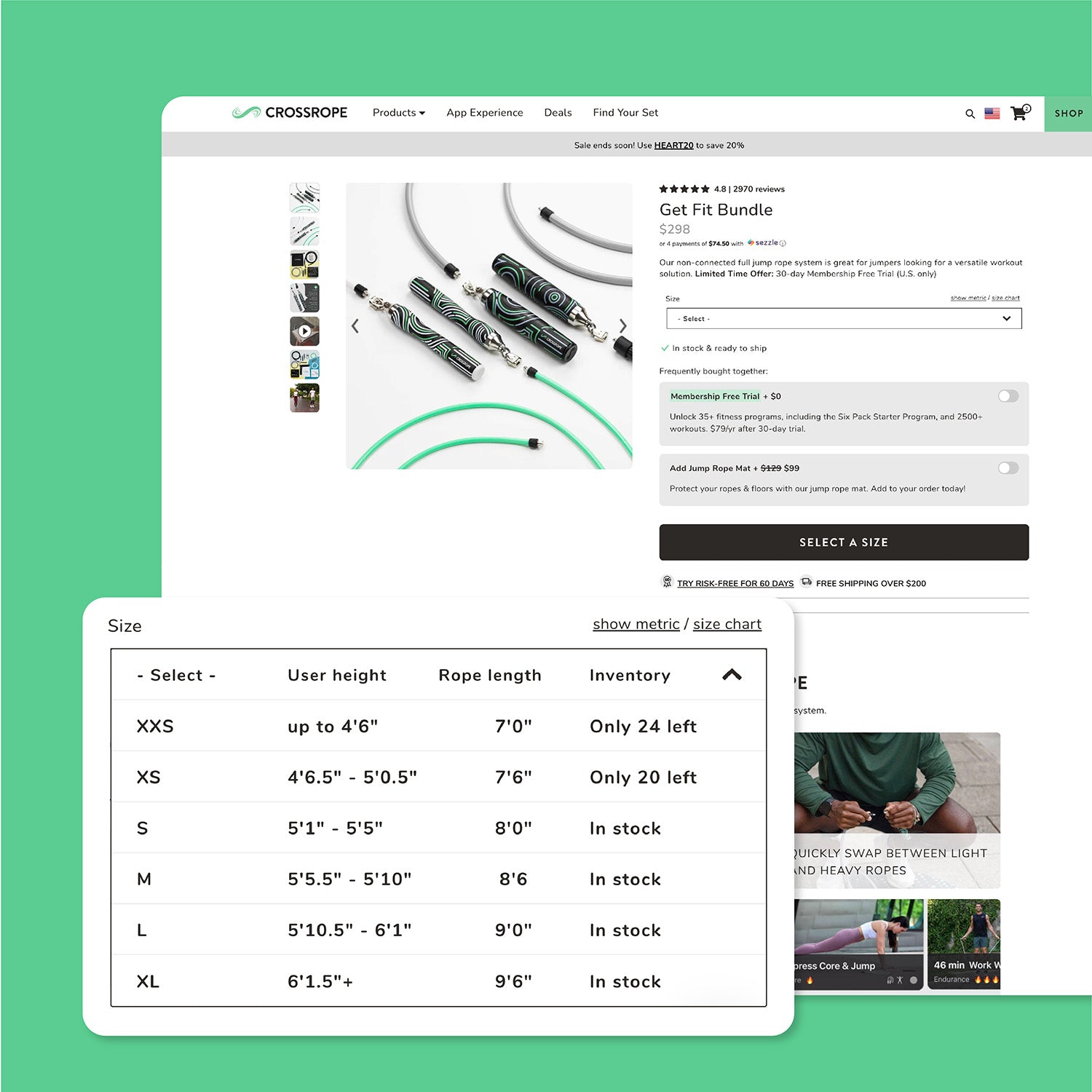 We completed Crossrope’s migration to Shopify within 3 months, including building a fully custom theme, sourcing Shopify-compatible apps and integrations to handle their tech needs, and customizing and testing their tracking setup. The site launched in May 2020, when the home workout industry was experiencing explosive growth due to COVID-19 lock-downs, so it was extra important that launch went smoothly and quickly.