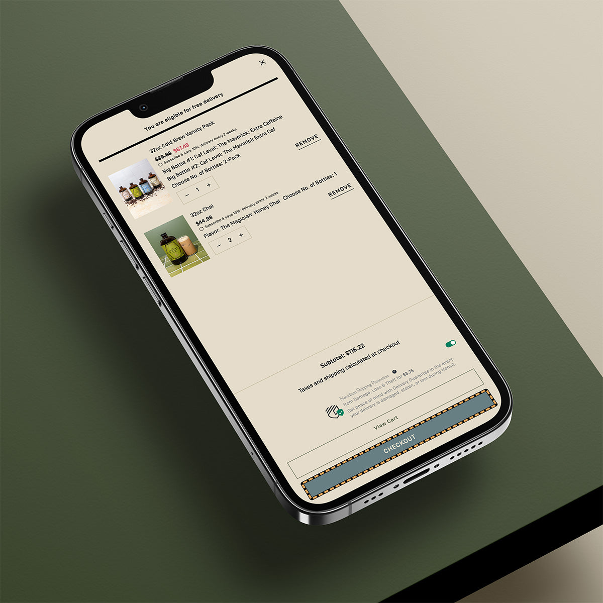 To find the best possible theme to both complement Explorer's new look and provide a solid foundation of eCommerce functionality, we used our quantitative scoring system to assess multiple themes based on 68 requirements we identified. After selecting Mojave, we layered in the new brand colors and fonts, plus a custom button style inspired by the new packaging designs, to make the theme feel unique and custom-designed for this premium brand.