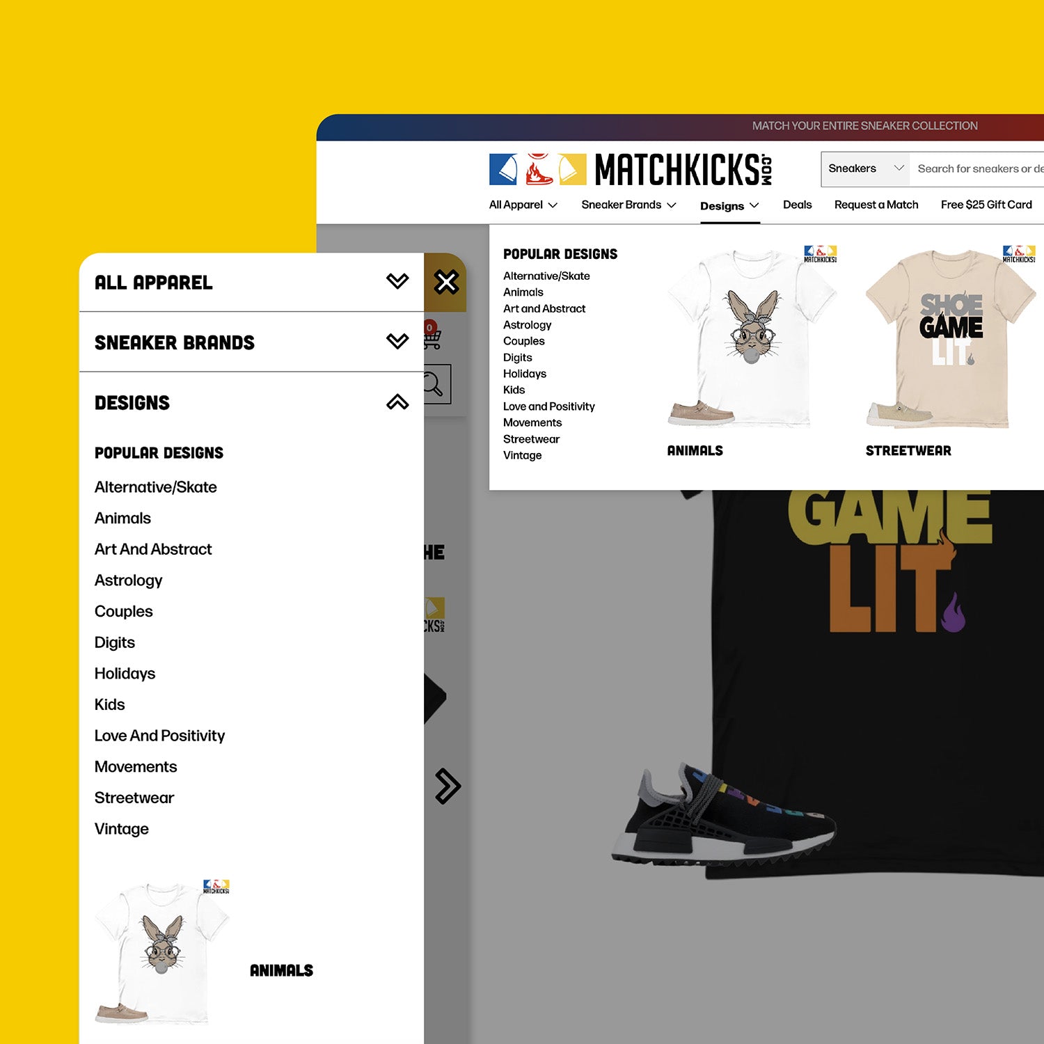 Match Kicks, from Lancaster, PA outside of New York, NY came to us with a WooCommerce-based site, a database of thousands of sneakers and hundreds of designs, and a growing fanbase. Unfortunately, the site was painfully slow and often broken with an expensive tech stack to manage the backend. The team had proven that there's a market for sneaker-matched clothing and needed a solid foundation to match their growth plan. Match Kicks wanted to level-up their site by migrating to Shopify to tap into its ease of use and strong ecosystem of apps.
