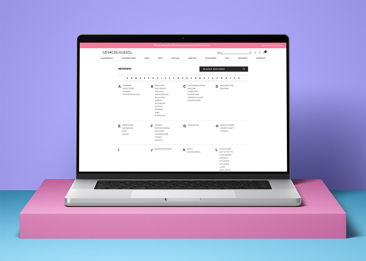 MiniDreamers works with an amazing roster of brands, and we wanted to make it easy for shoppers to explore them. We built a custom designers page that allows users to browse by brand quickly, filter easily, and discover new favorites.