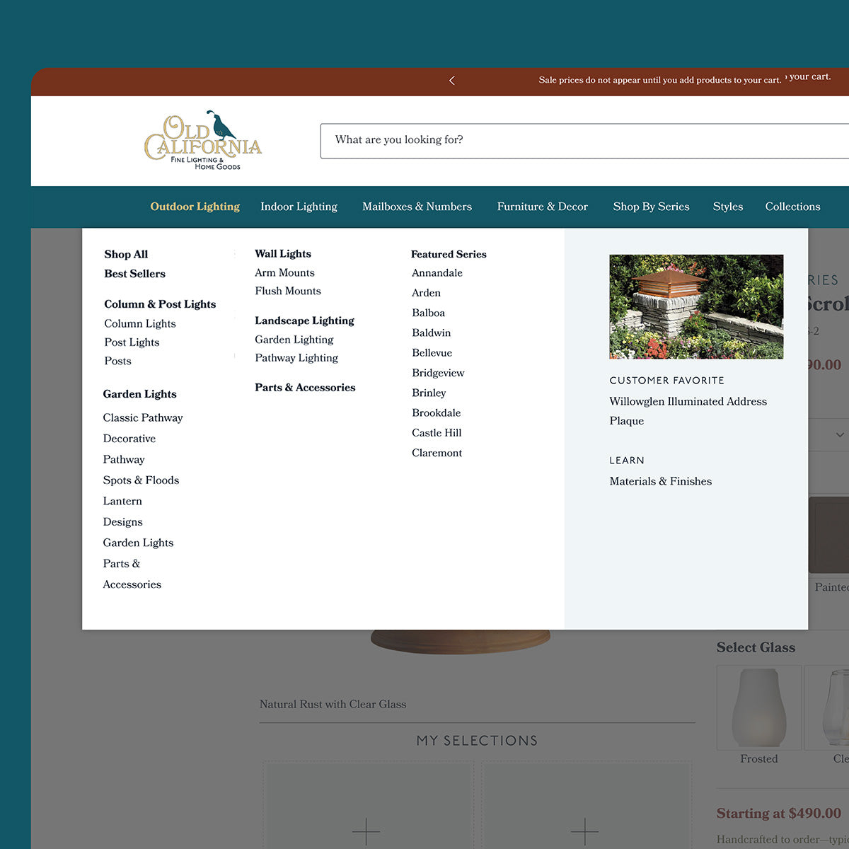 Old California has been selling online on a home-baked eCommerce platform for years. The custom site provided the flexibility needed for their hundreds of highly customizable products. But, it was difficult to add a new product, update an image in the project gallery, or even change a word on the homepage! Ultimately the platform limited their growth online.