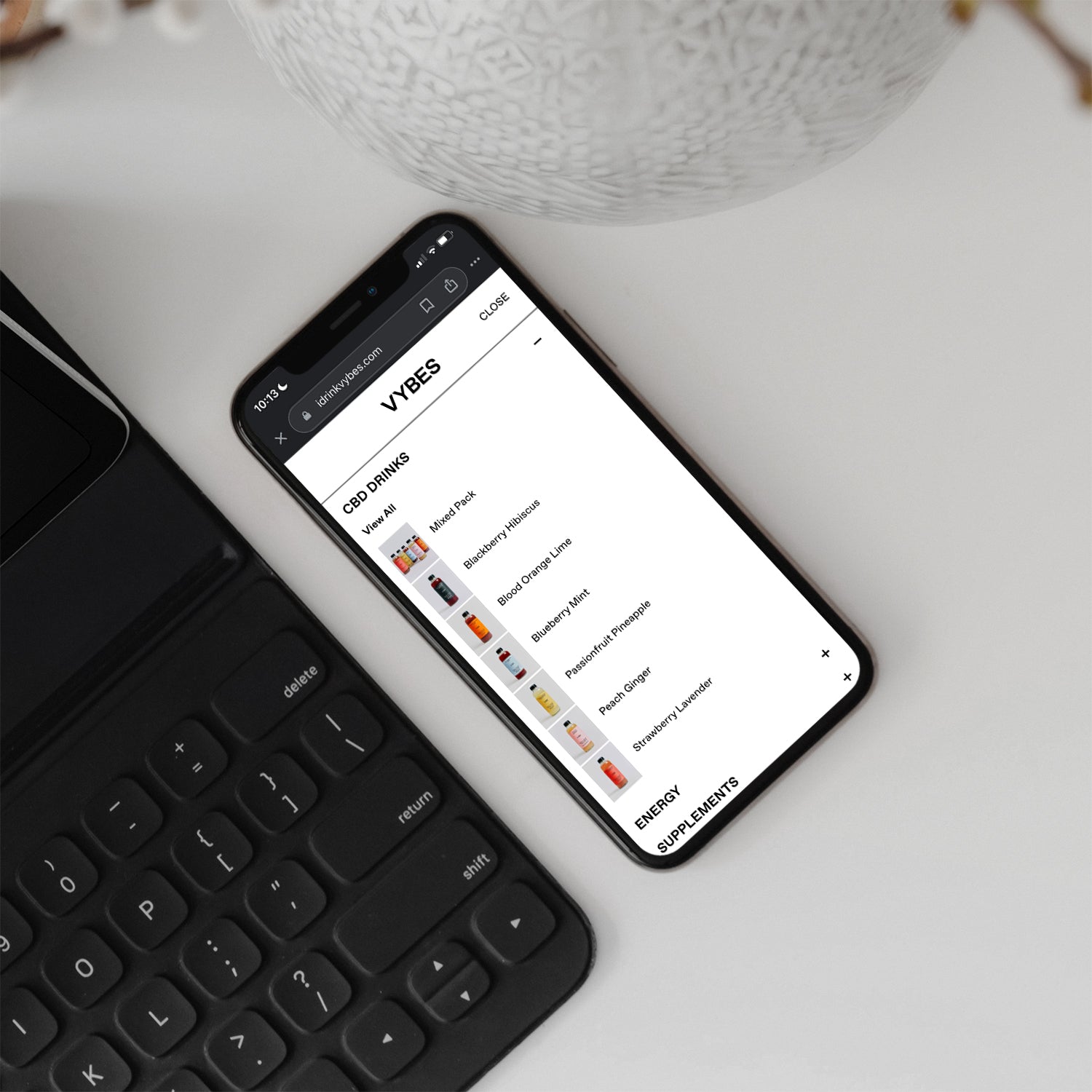 VYBES reached out to us for help with UX/UI strategy, design, and Shopify development in the fall of 2021. Shifting their strategy focus from solely retail to e-commerce, they recognized the need to tailor their site. This shift better met the team’s products and marketing needs.